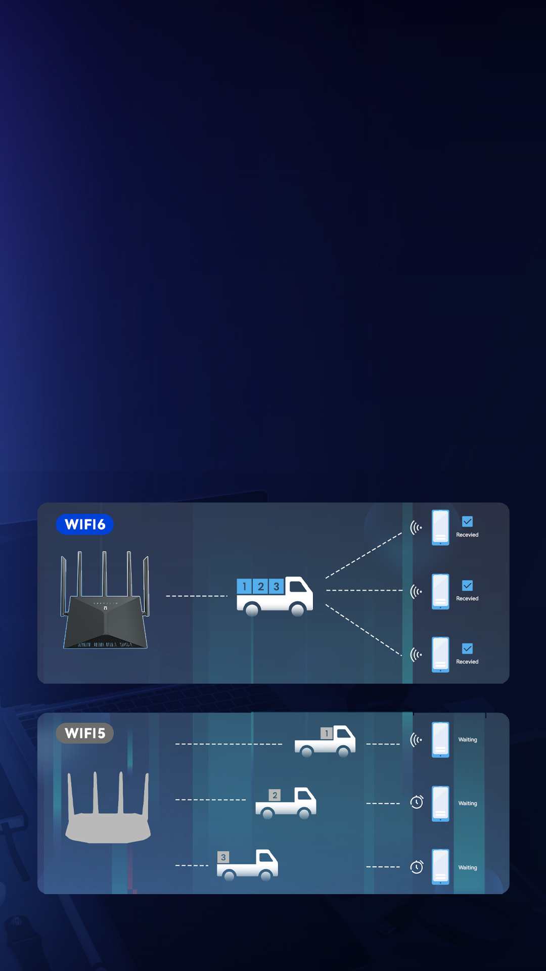 Dual-Band Allocate devices to different bands for optimal performance OFDMA Simultaneously communicates with multiple Wi-Fi 6/5/4 clients Airtime Fairness Improves network efficiency by limiting excessive occupation 4 Streams Connect your devices to more bandwidth |
