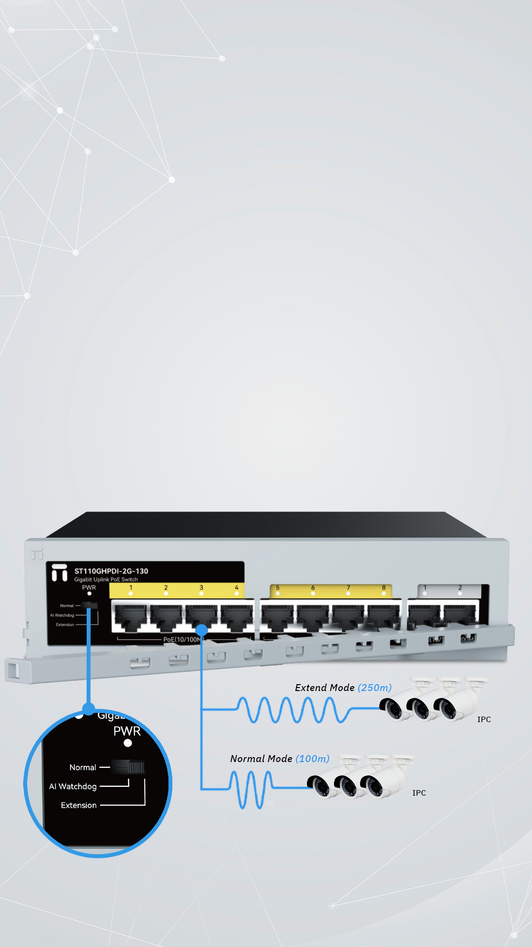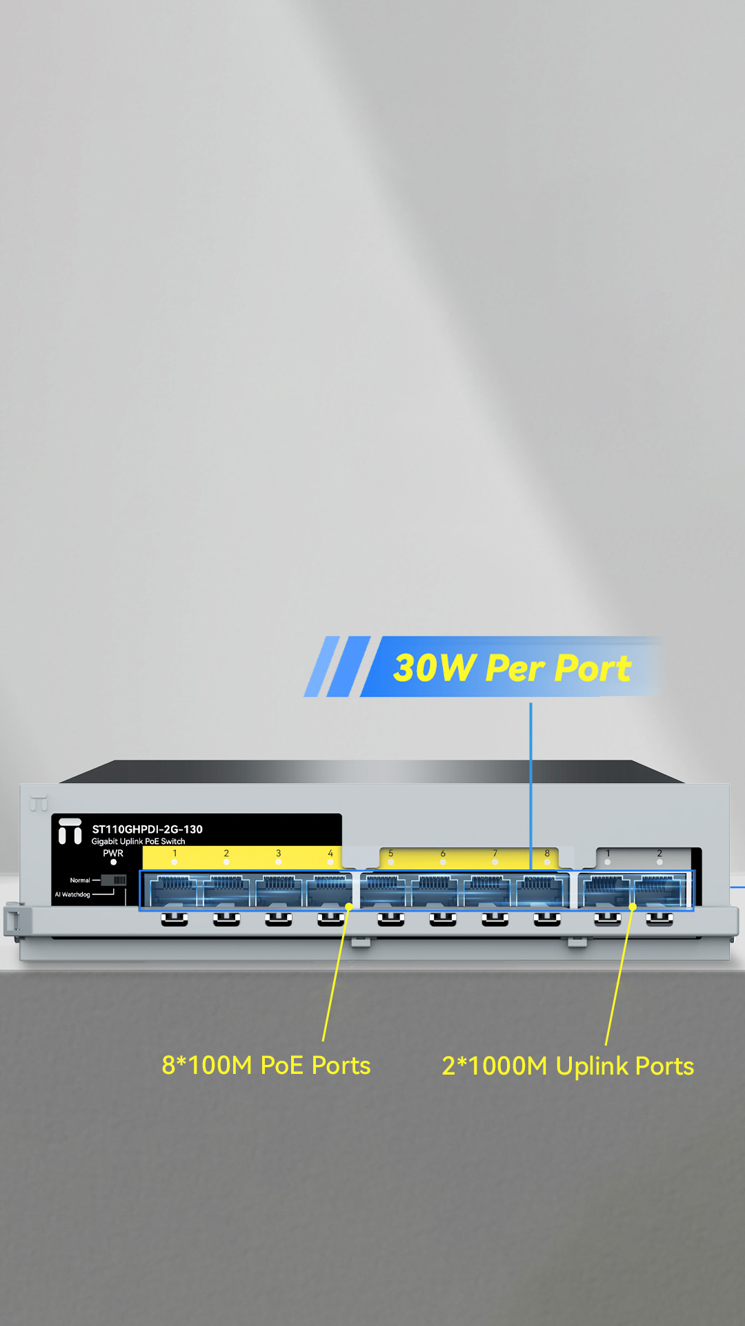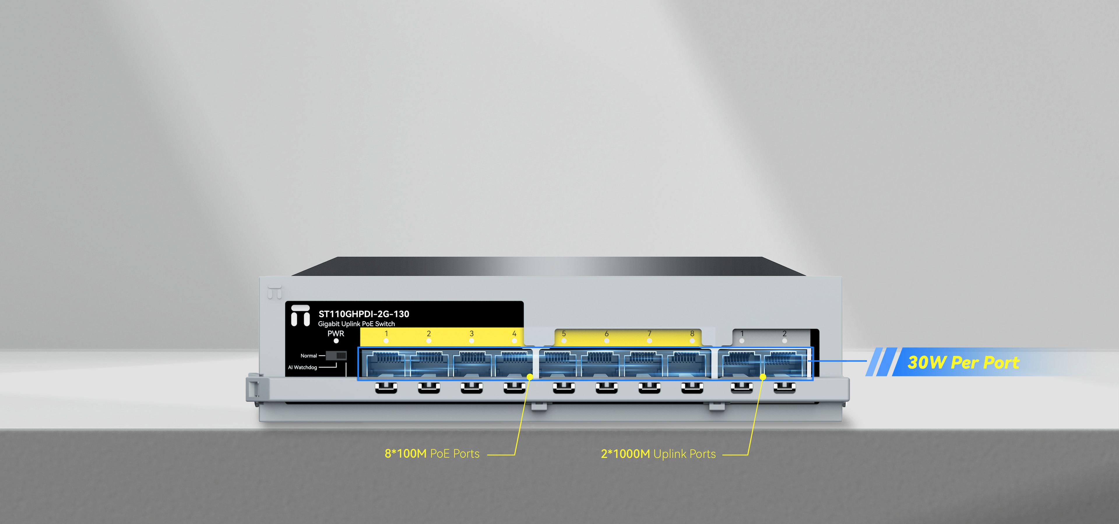 8*100Mbps POE ports 2*1000Mbps uplink ports |