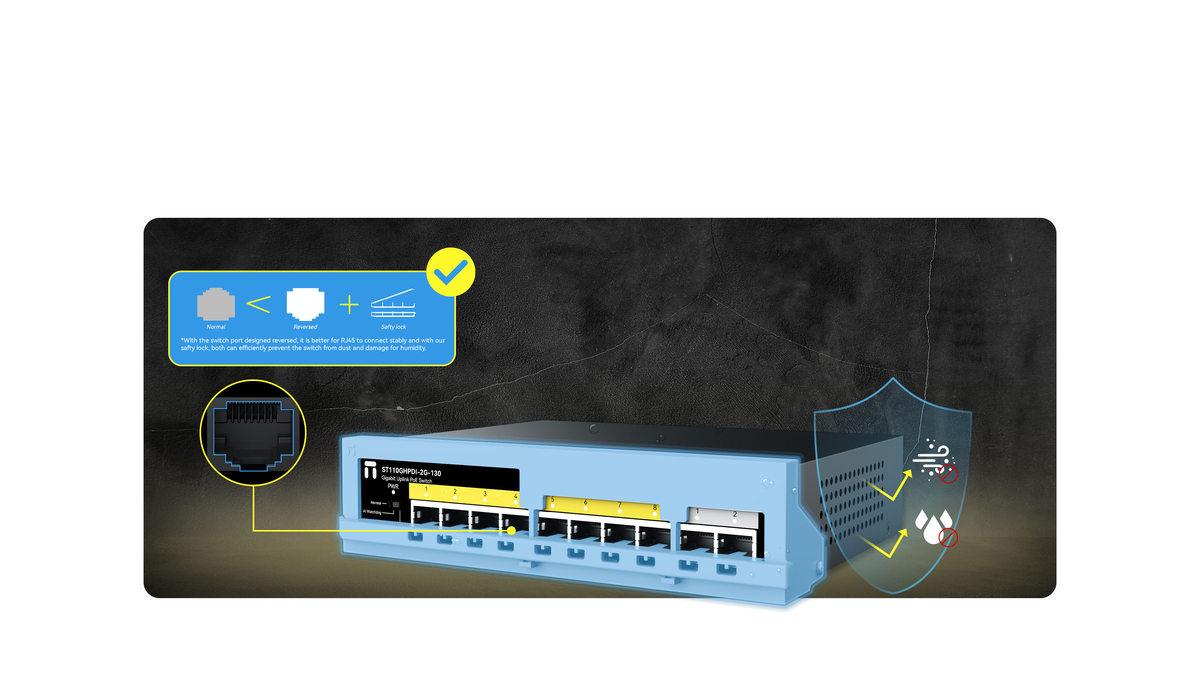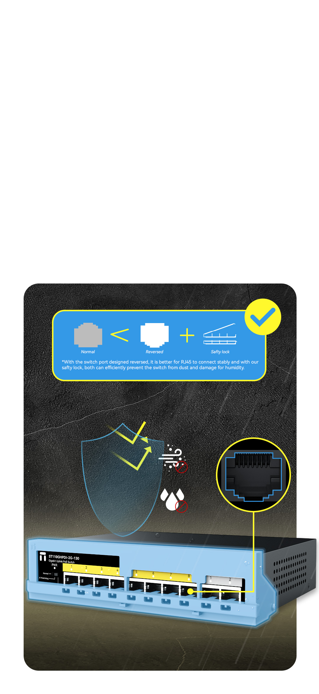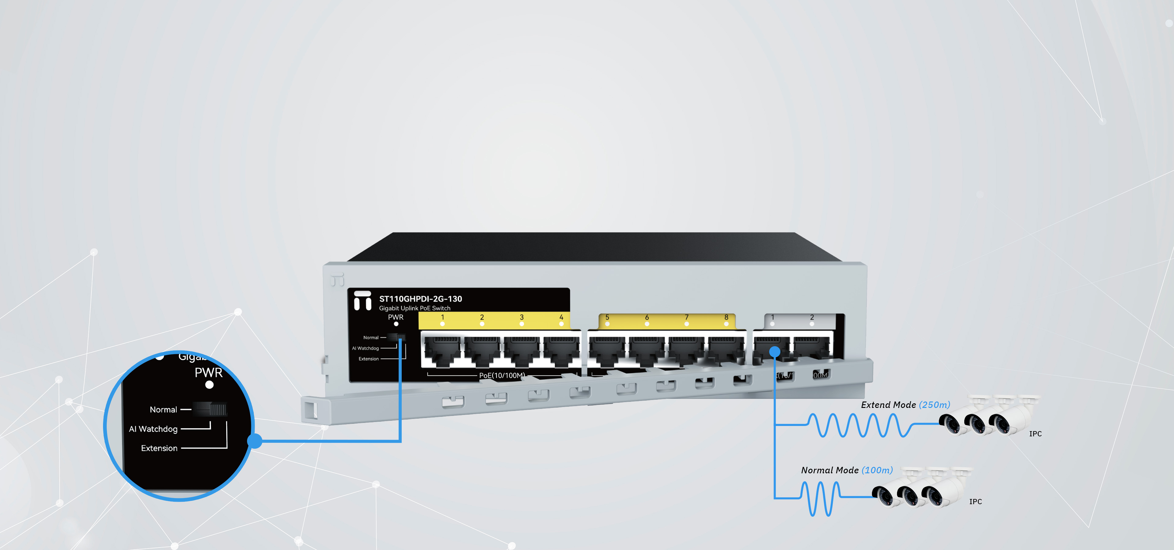 8*100Mbps POE ports 2*1000Mbps uplink ports |