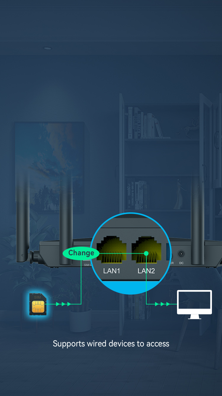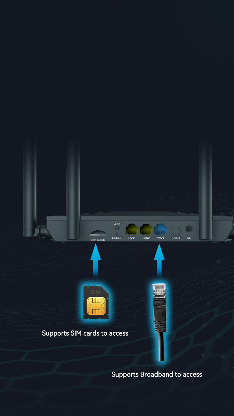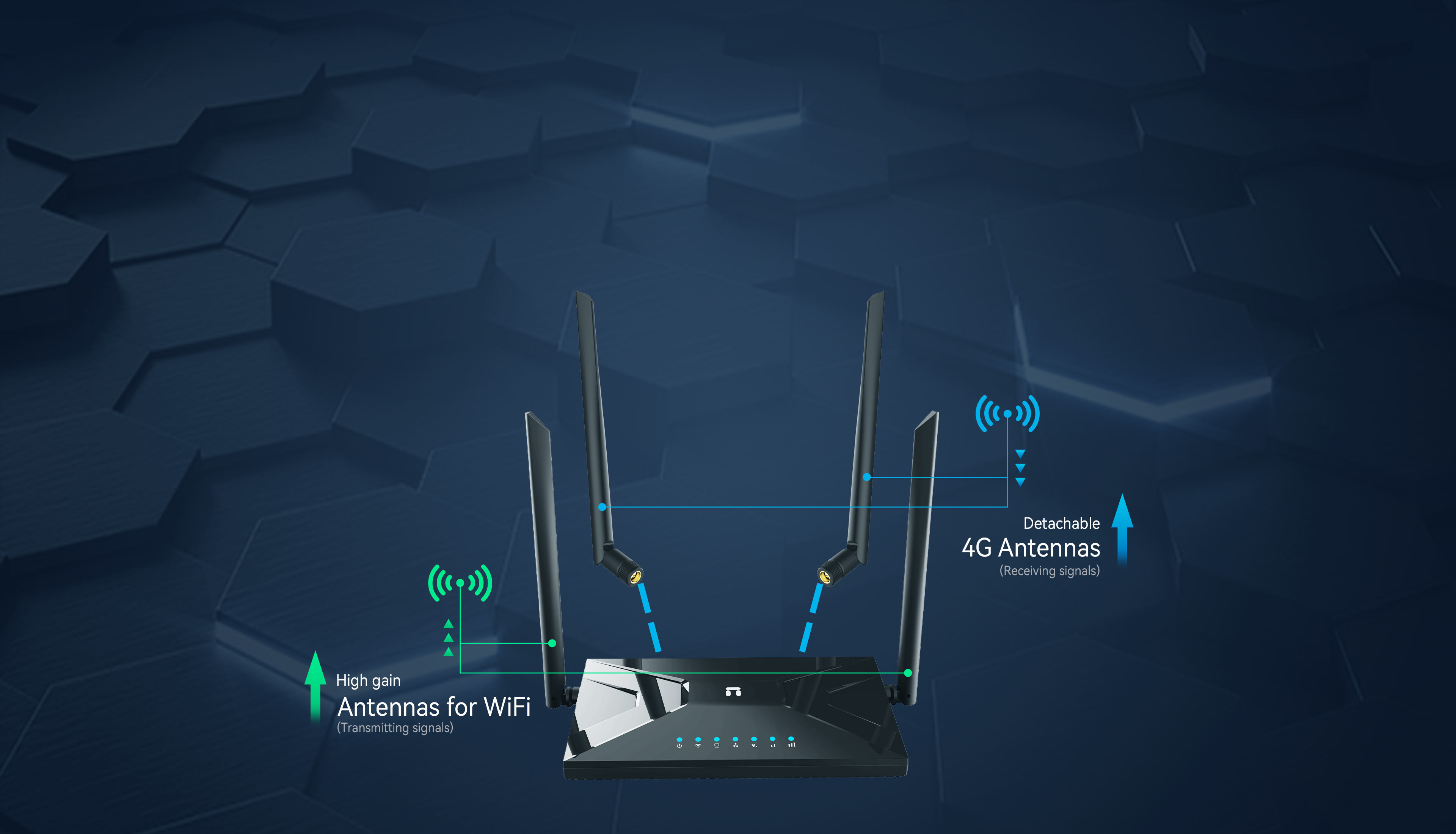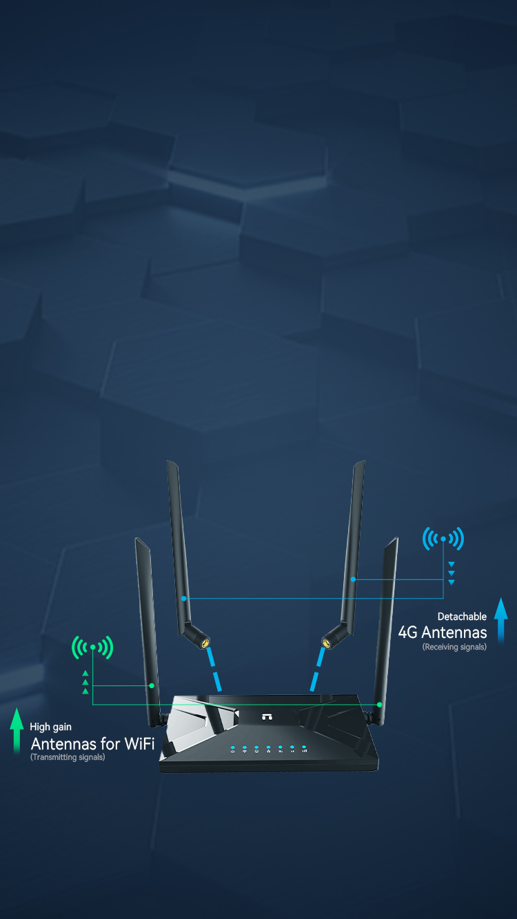 2* 5dBi WiFi antennas, 2 SMA detachable 4G antennas |